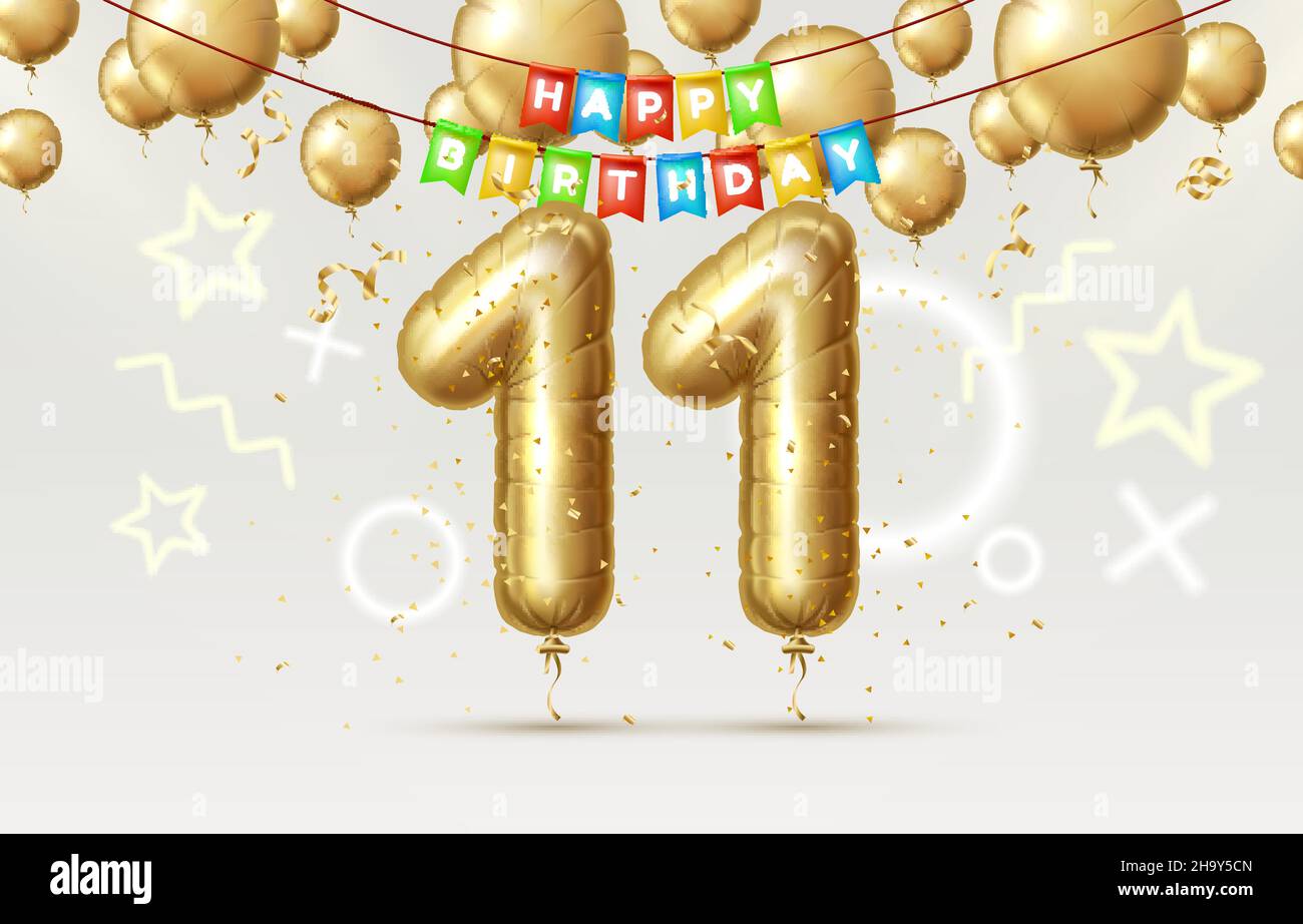 Happy Birthday 11 Jahre Jubilaum Der Person Geburtstag Luftballons In Form Von Zahlen Des Jahres Vektorgrafik Stock Vektorgrafik Alamy
